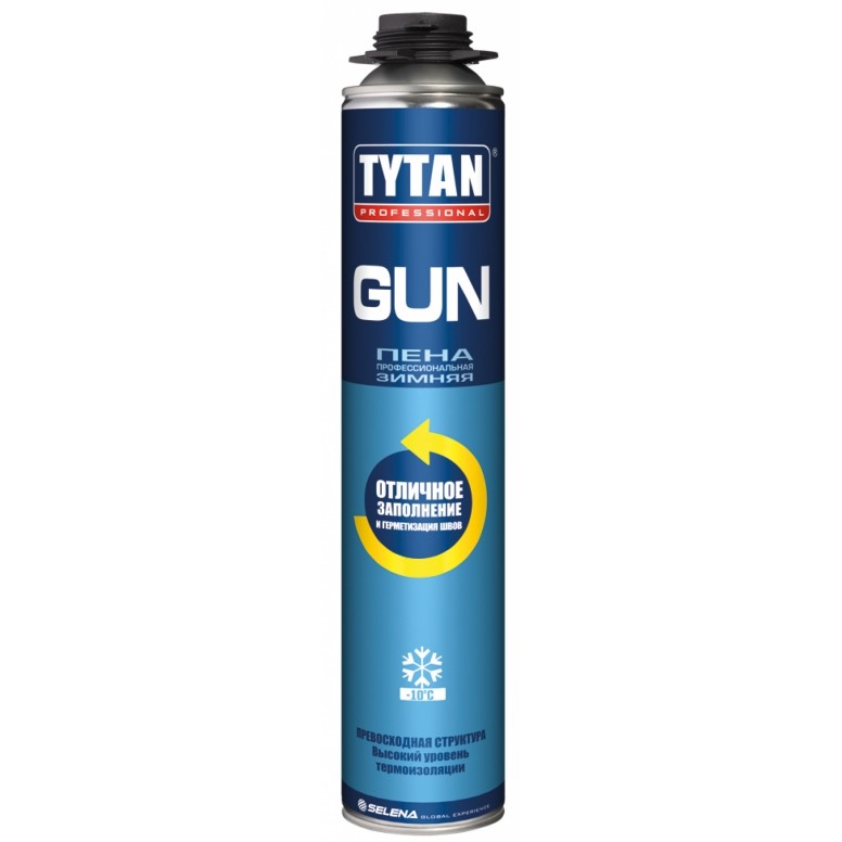 Tytan professional or pistol assembly sealant, unlike foam with a tube, is produced in specialized cylinders equipped with threads for screwing the dispenser gun. With the help of such a device it is possible to apply the composition to hard-to-reach places Using a gun, the builder will be able to quickly and accurately distribute the assembly weight. The use of such a sealant allows large-scale construction work with minimal material consumption.