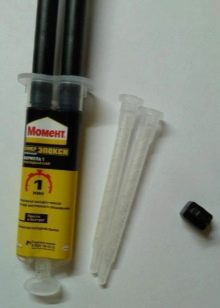 Moment two-component glue is currently available in several varieties.So, often in the building stores you can see a sample of "Super Epoxy Transparent." This epoxy is universal and is not subject to expansion at the time of solidification. In addition, the model is durable and is not affected by various oils and water.