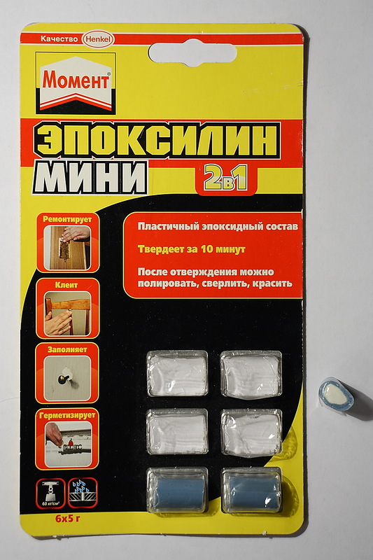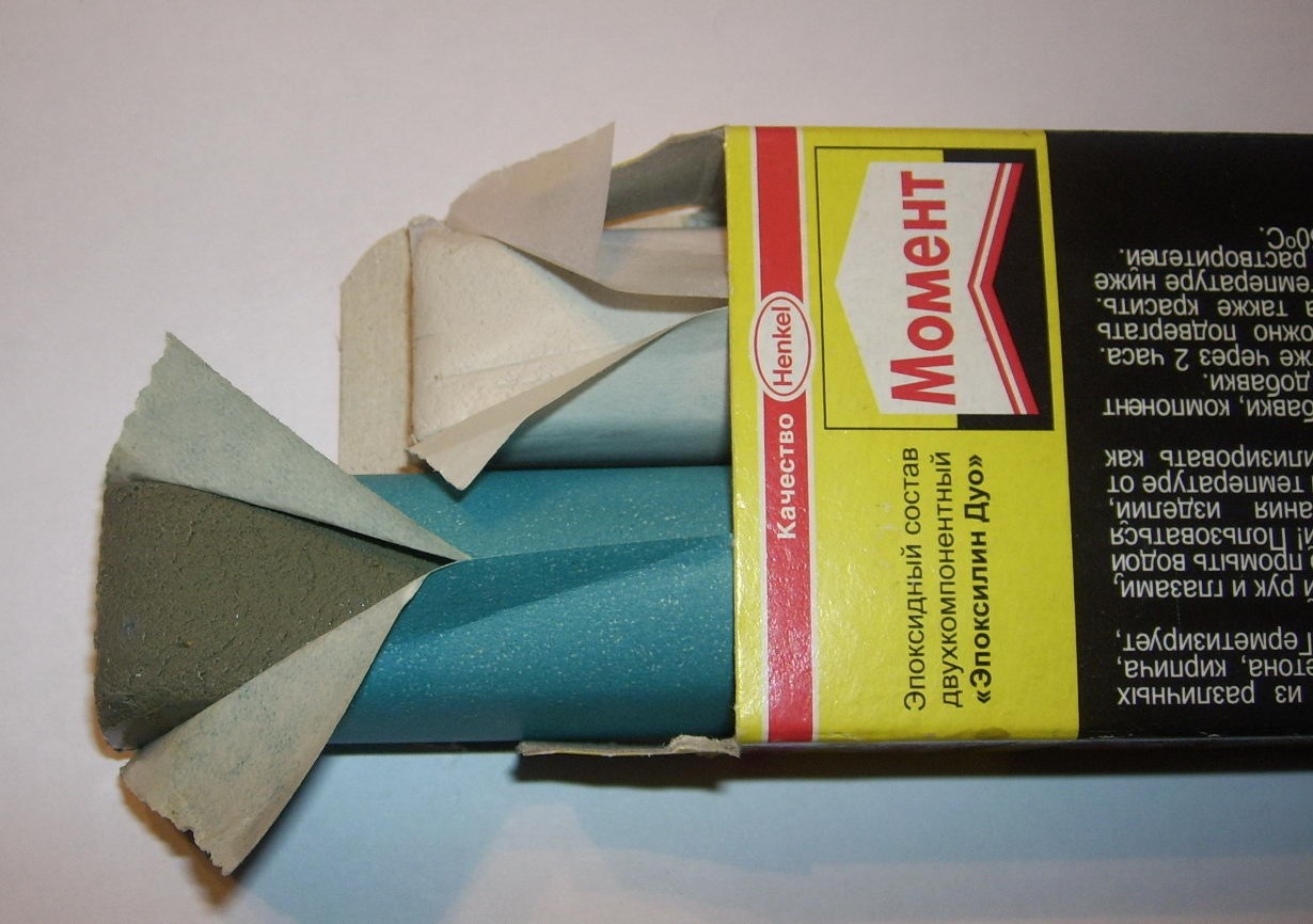 This model is represented by a putty, which has a cylindrical shape, in which, under the visible element from the outside, there is another element that is necessary for hardening.