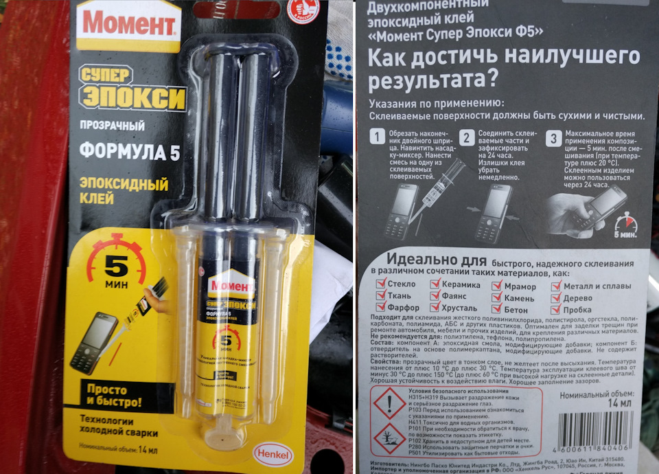 Glue "Super Epoxy" can be called a universal mass for gluing different materials together.