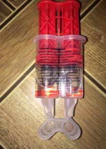- Two component adhesive - This is the most common version of the adhesive composition. This glue goes on sale in the form of packaging from two tubes - in the first resin is contained directly, and in the second - a hardener in a liquid or powdered state.Before use, both components are poured together and mixed with a small spatula - the prepared composition needs to be applied to the surface within 60-120 seconds, otherwise the composition will harden, and the necessary adhesive properties will be completely lost.