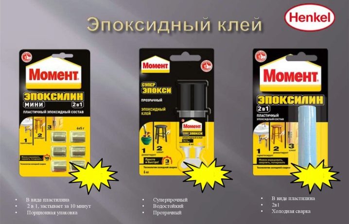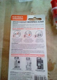 “Moment” - this epoxy glue can be found in any building and hardware store at a quite affordable price. This composition is implemented in small tubes, the weight of which does not exceed 50 ml, as well as in bulk packages - such adhesives can be used many times.