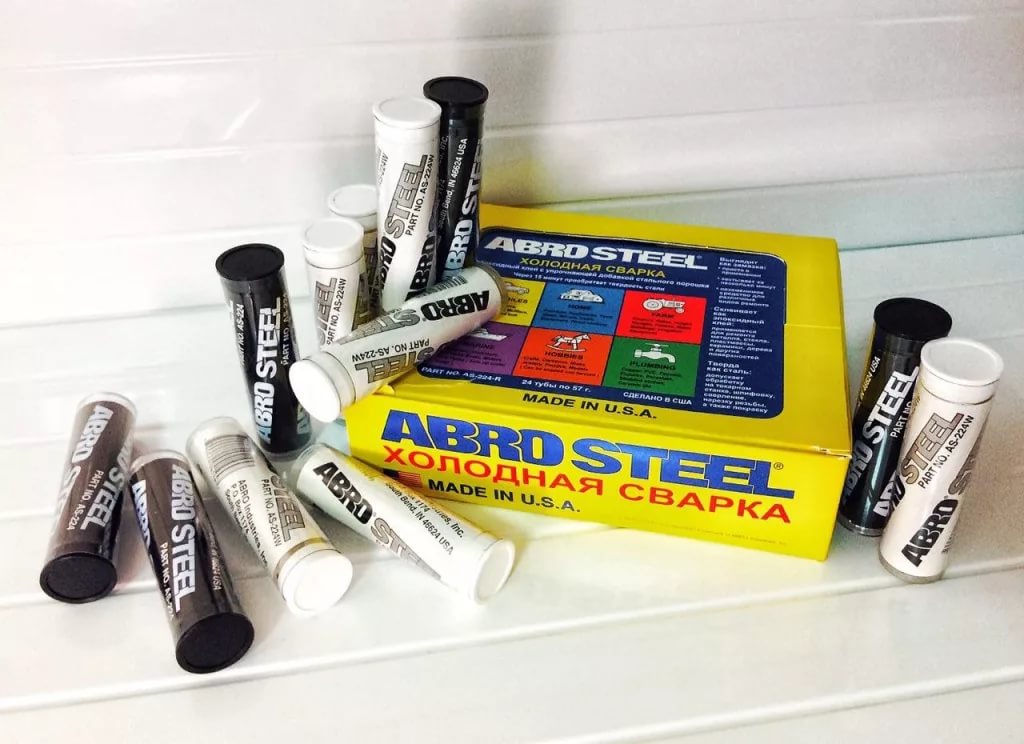 Often in life you have to deal with emergencies in the form of pipe leaks, holes in the radiator and gas tank, etc. To quickly fix such a nuisance, it is recommended to use the adhesive mixture (cold welding) Abro Steel. She is well known in the construction market and has received positive feedback from numerous buyers, as it provides a reliable and high-quality connection.