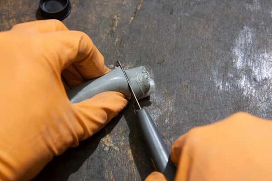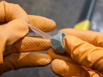 Before preparing the composition, the work surfaces should be prepared. Bases are cleaned of rust and mechanical debris, wiped dry and degreased (if necessary). Then you need to cut off 1/3 of the rod and thoroughly mix both components with wet hands. An indicator of a properly prepared mixture is the color of the material: it should become uniform, without inclusions and stains. Then the resulting composition must be applied to both parts, then connect them together and fix.