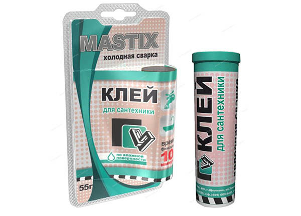Welding Mastix is a plasticine material made in the form of a rod consisting of two layers. The layers are separated from each other by packaging and are mixed only immediately before installation. The structure of cold welding includes amine and epoxy resins, metal fillers and mineral additives.