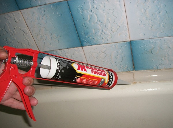 For convenience and uniform application, a special device was invented - a gun for liquid nails.