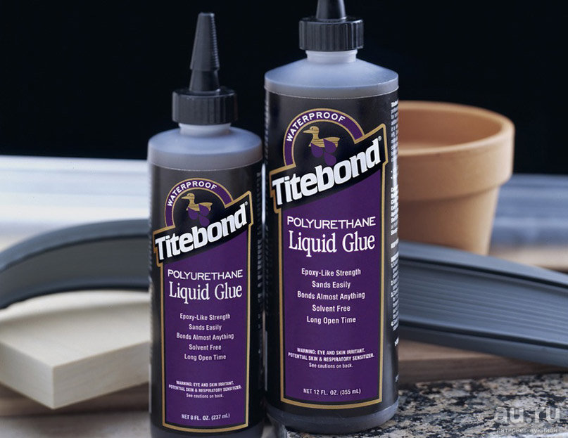 - Titebond - professional adhesive composition. Based on several types of solid synthetic resin. Glue perfectly connects all types of wood, including oiled. Items stuck together can be used in extreme conditions and under high dynamic loads.