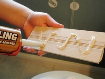 The only negative is the higher cost of liquid nails, so it is better to use them for facing small surfaces. For laying tile on large areas it is more rational, of course, to use classic masonry mixes. Liquid nails are often used to glue the ceiling panels, they can also fix the baseboard or baguette. For these purposes, it is better to use fast-setting compounds for plastic.