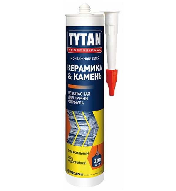 For tiles, in addition to the compositions of heavy-duty fixation, you can also purchase "Titanium Ceramics and Stone", "Liquid Nails". They are suitable for fixing materials of great mass, including ceramic tiles and artificial stone. Available in white and beige tones, which eliminates the use of grout.