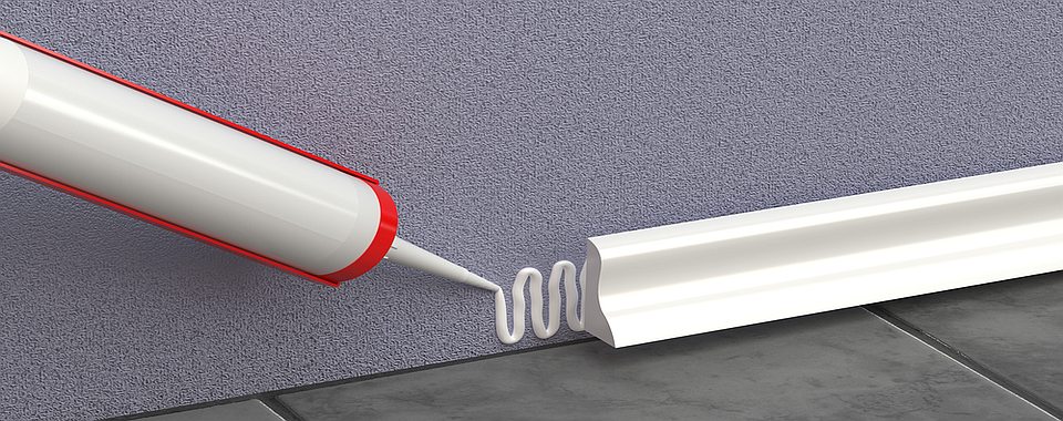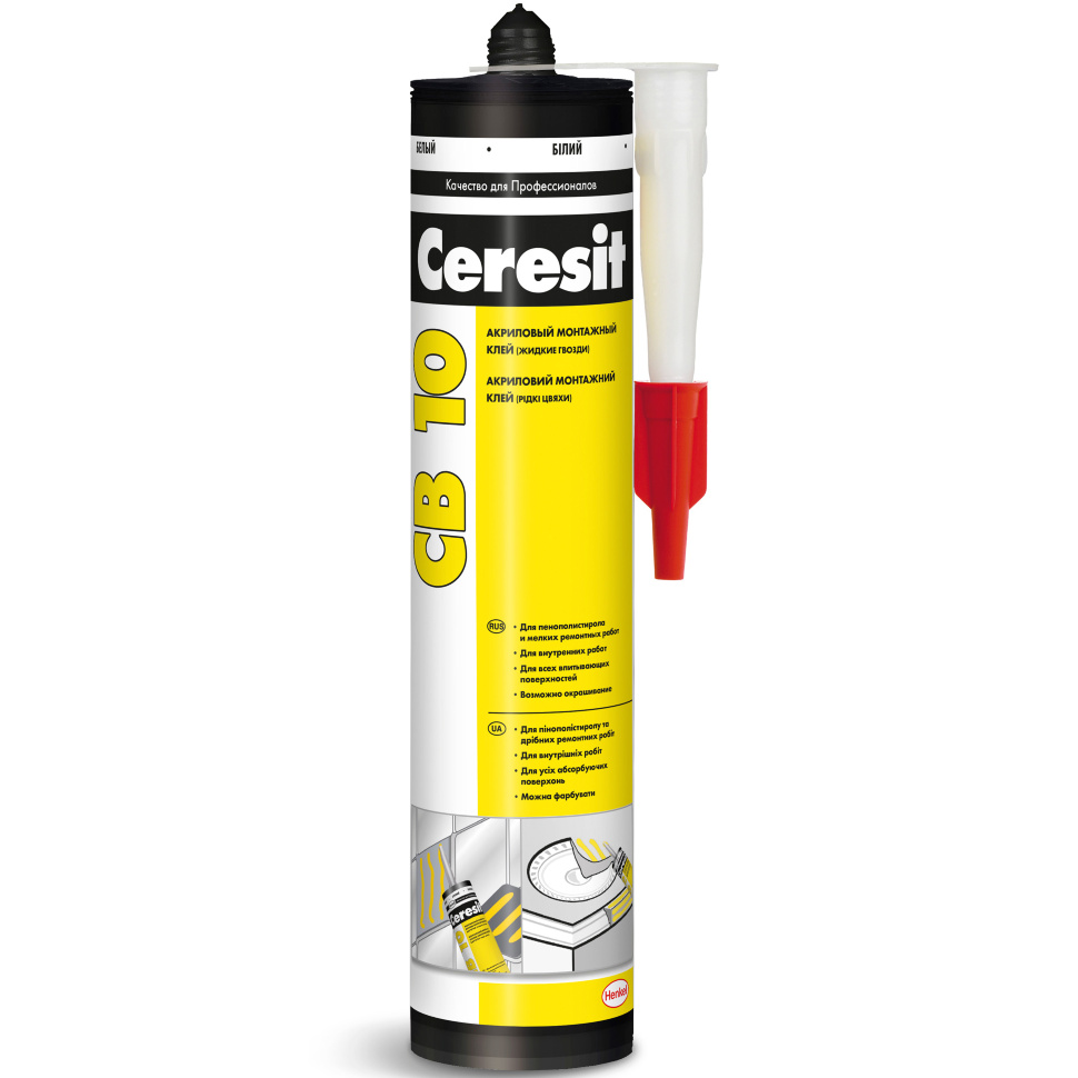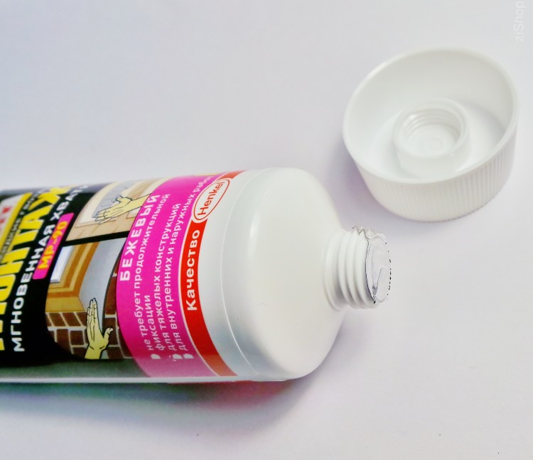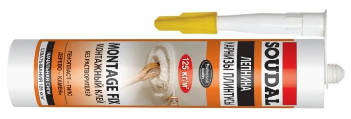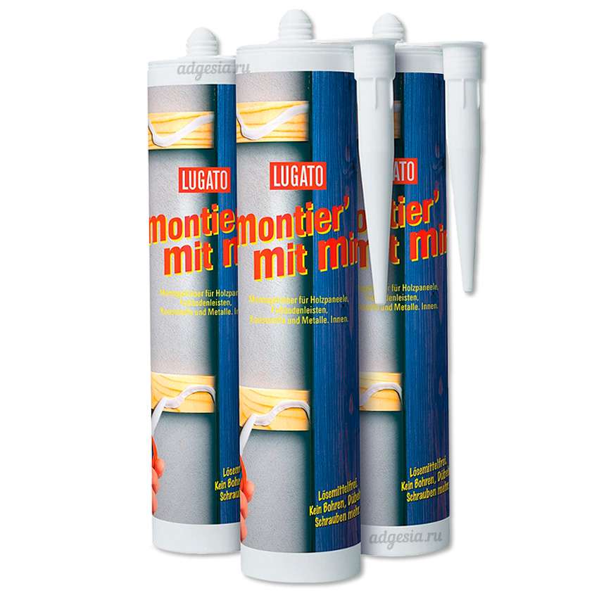 The quick-drying formulations include “Solvent Free”, which is convenient to use for gluing ceiling moldings, moldings, baguettes and other elements attached to vertical bases.
