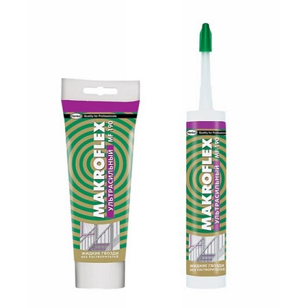 The leading manufacturer of liquid nails can be called the German company Henkel. Available adhesives Makroflex and "Installation Moment" are universal. There is also a special line for ceiling tiles, cornices and baguettes, separate compositions for particle board, wood, glass, metal. The “Super Strength Plus” modification withstands increased (up to 100 kg / m2) loads.