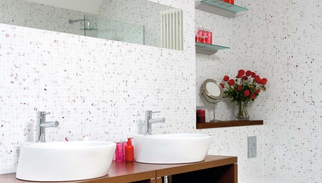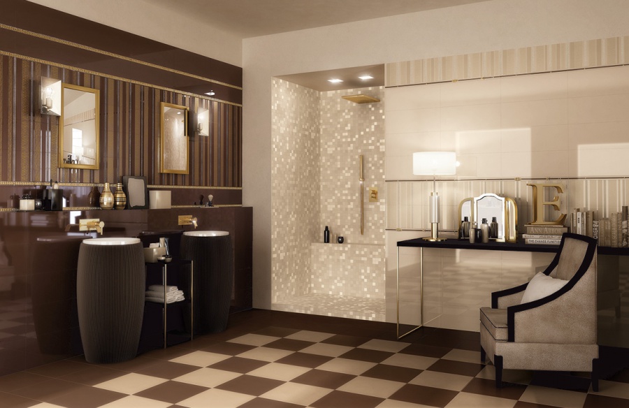 In general, Caramelle products are distinguished by the highest quality workmanship, selection of materials and its color schemes. The combination of glass and stone in the mosaic enrich the interior of the room, so it looks very stylish and modern.