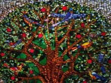 Glass mosaic is usually divided into two subcategories: for the decoration of walls and ceilings, the decoration of furniture and accessories. The art form originated in the 1500s in the era of Nyaunyan. Glass mosaic is combined with precious and semiprecious stones.