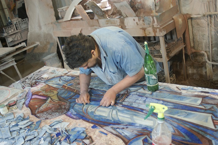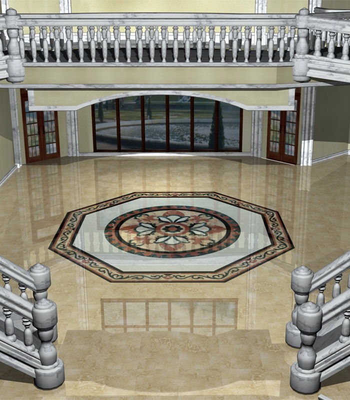 Florentine technique is often used from ceramics to create panels on the walls or floor.