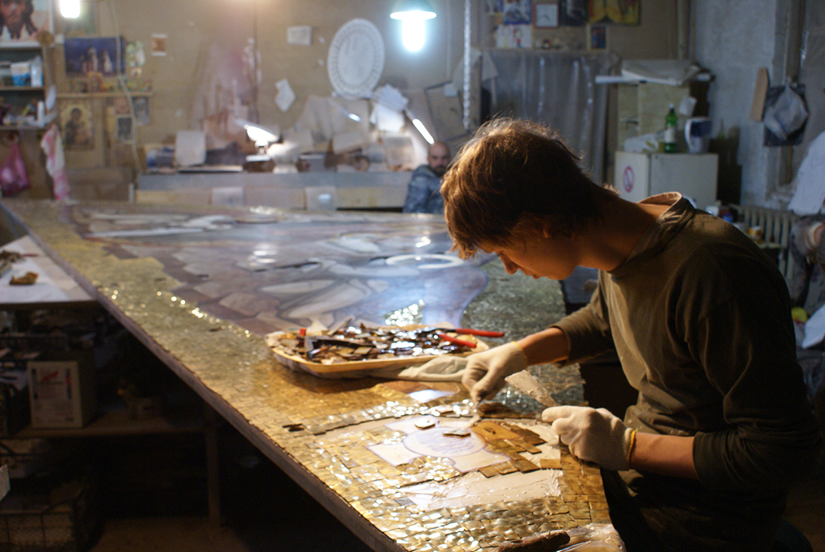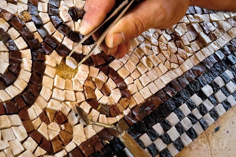 The final stage of the ceramic mosaic is the grout. Her role is to connect the elements.