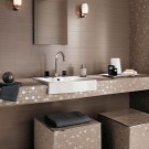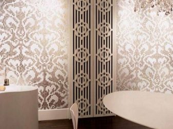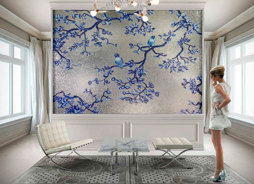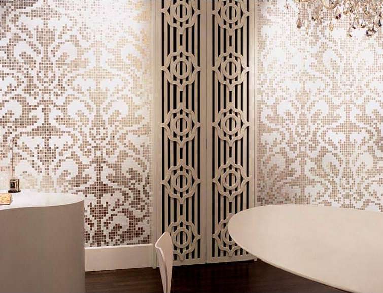The time has passed when the use of mosaic in decorating was limited exclusively to decorative functions. In modern practice, it is used to create various elements of interior decoration, decorating columns, bathrooms, pools, kitchen tops and architectural sculptures.