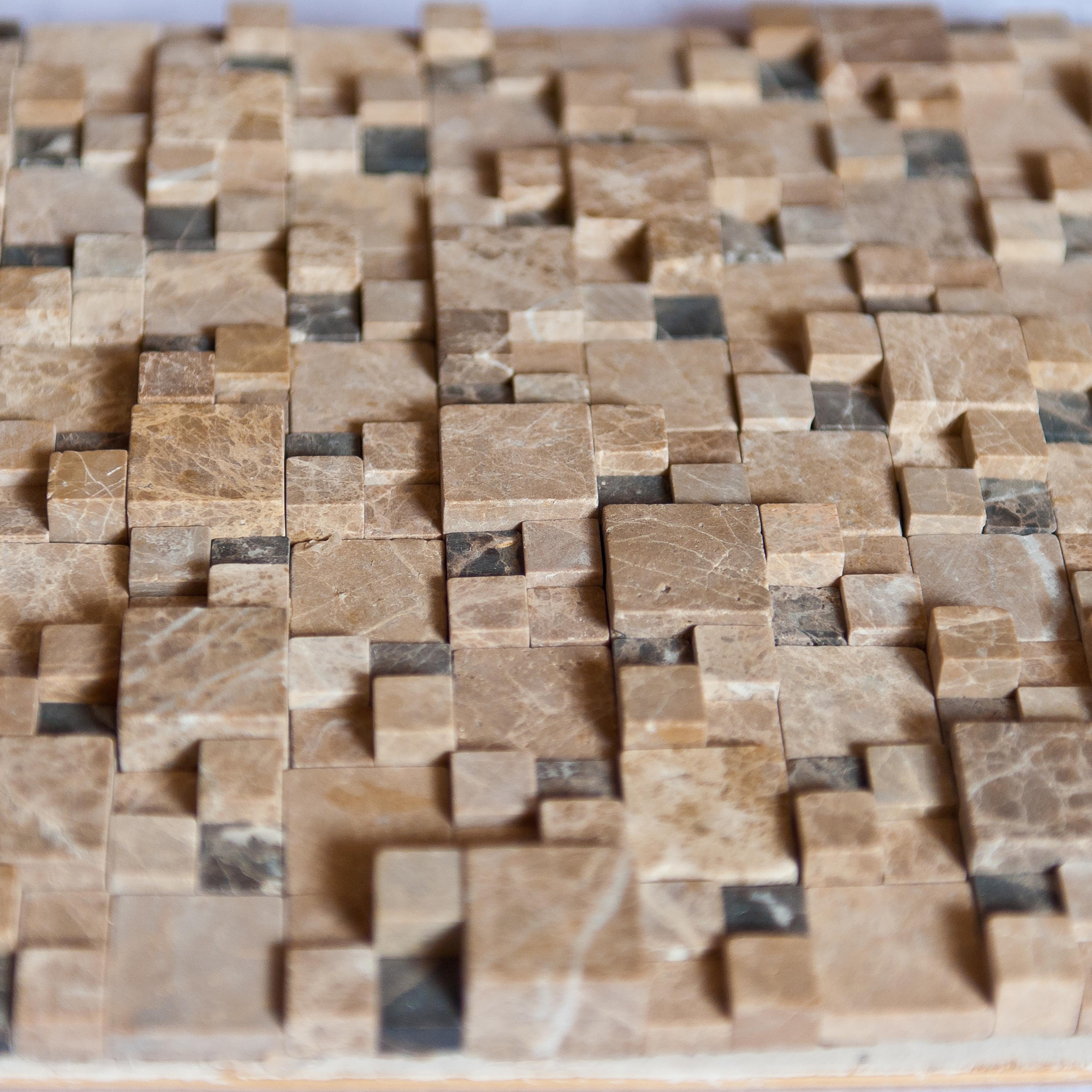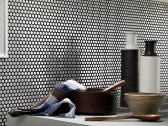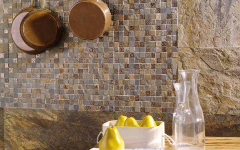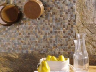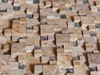 The mosaic can be made of artificial stone, which is obtained by processing environmentally friendly acrylic resins. It looks almost no different from the natural mineral.