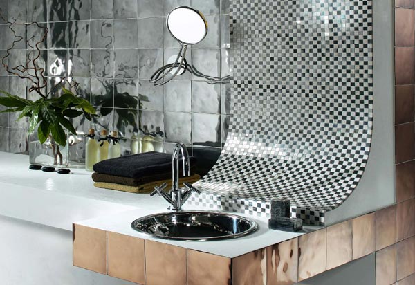 Most often, the plates are made of a standard square shape, but it is possible to manufacture any shape: rectangular, diamond-shaped, hexagonal, oval, round. The surface of the plates is glossy, matte, with a pattern. For facing of bathrooms and pools there is an option from stainless steel.