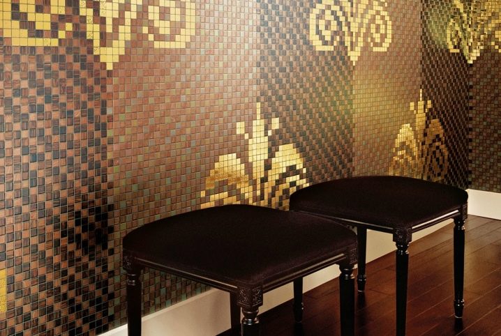 Metal mosaic can be made of non-precious or precious metals. When laying a pattern of non-precious metals, the substrate does not use a clay pad, but thin rubber linings are no thicker than 4 mm. A metal plate is attached to the lining. This method of laying makes the image flexible and suitable for finishing complex surfaces.