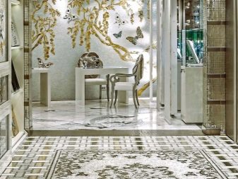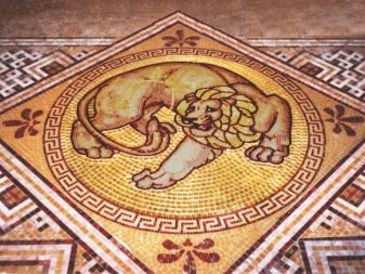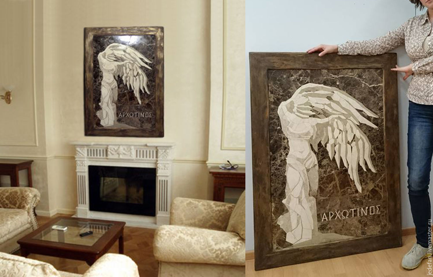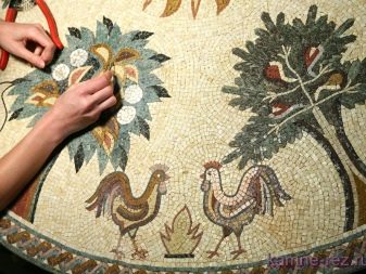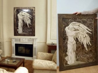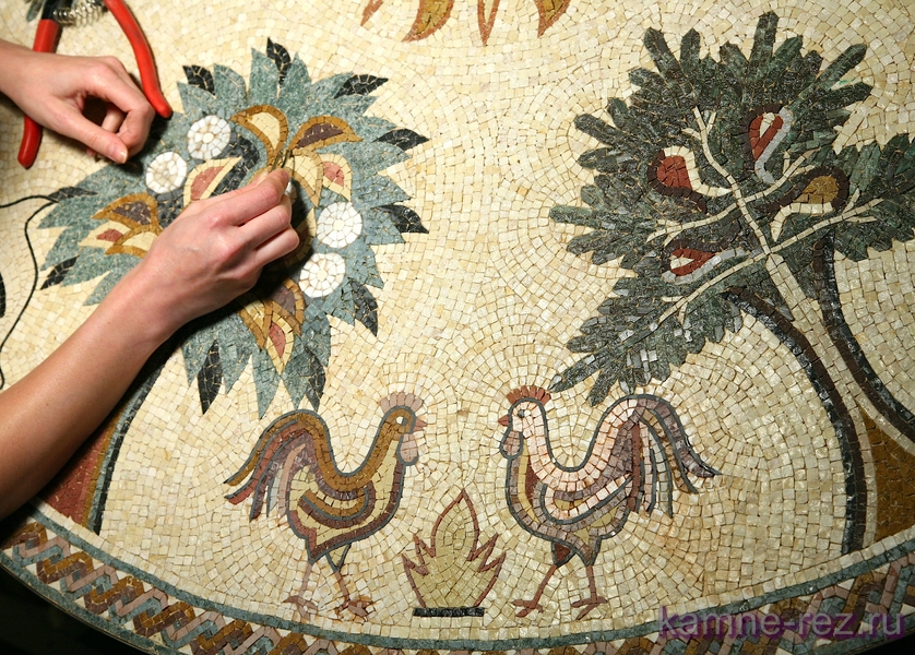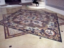 On the floor, a mosaic imitating a Persian carpet with numerous decorative elements looks spectacular. Reproductions of famous paintings will look spectacular on the wall. On the basis of commercial objects from marble lay out business symbols (logos, slogans and other thematic images). Using this decor technique, masters lay out icons and scenes of religious themes.