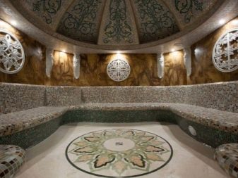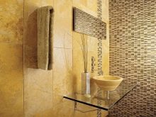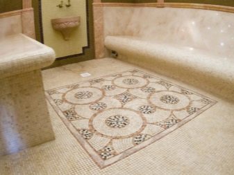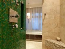 - Resistant to moisture. Natural material is not afraid of dampness and increased moisture. In this regard, the mosaic can be used for finishing hamam, baths, saunas and bathrooms. It looks great on the floor and wall ceilings.