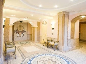 Professional decorators use marble mosaic for external and internal facing of rooms. This finish is expensive, its volume depends on the financial capabilities of the customer. Many people mistakenly believe that the mosaic is used only for cladding arches, themed restaurants, hamam and other similar institutions. It can be found in houses and apartments, luxury boutiques, restaurants and other high-class public institutions.