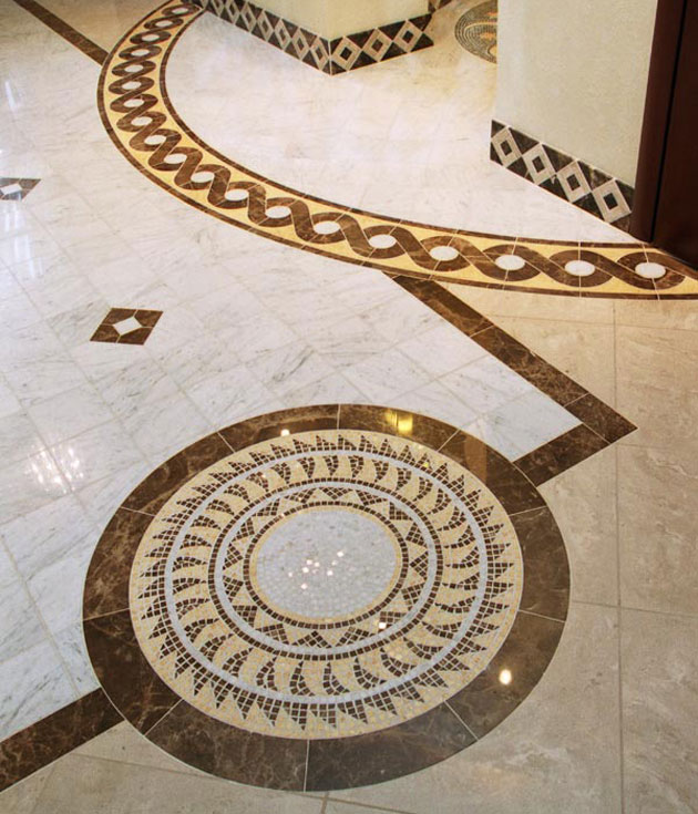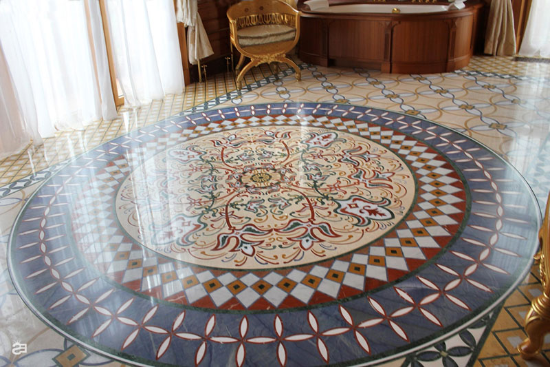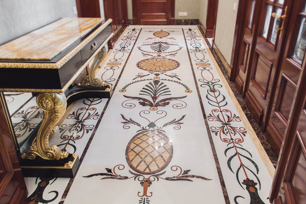 Let's summarize the article with a visual demonstration of marble mosaic in the interior.