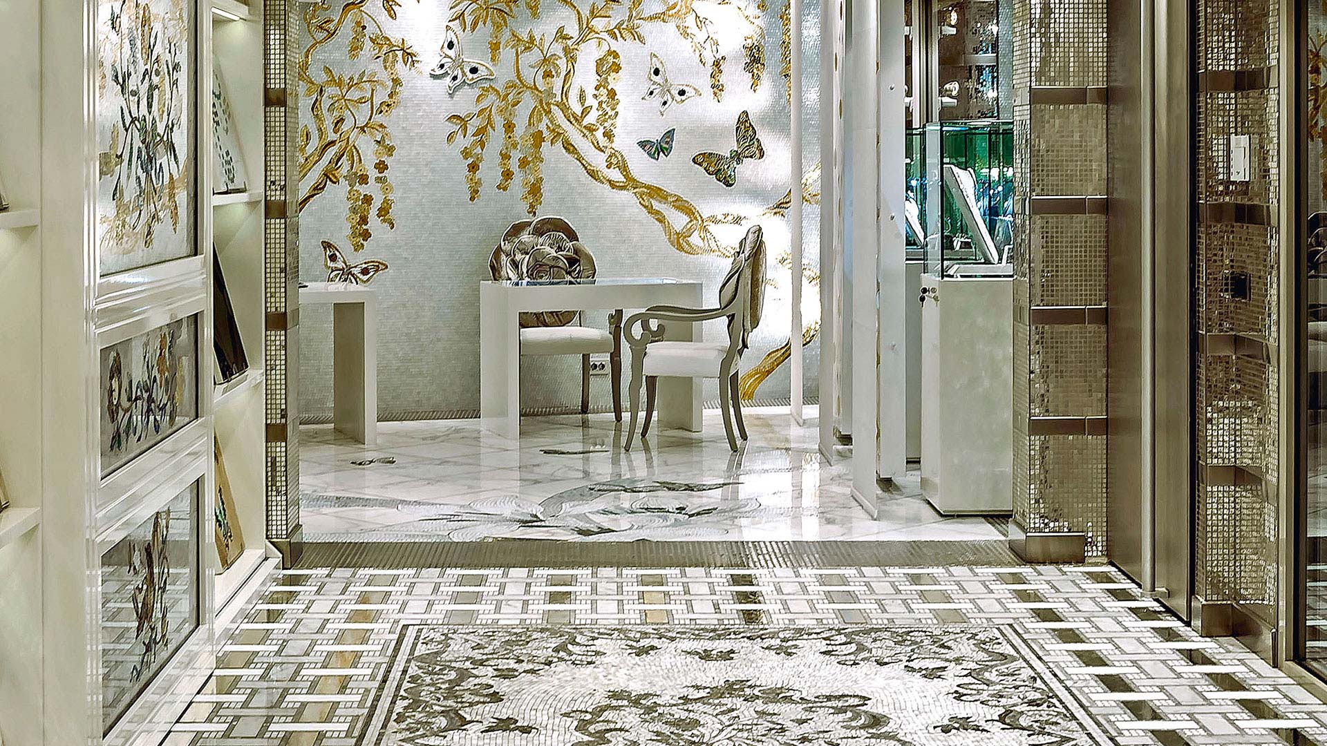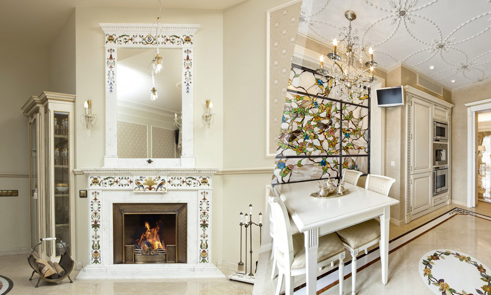 Florentine marble mosaic is often used to highlight specific locations or interior details: furniture, window openings, mirrors.