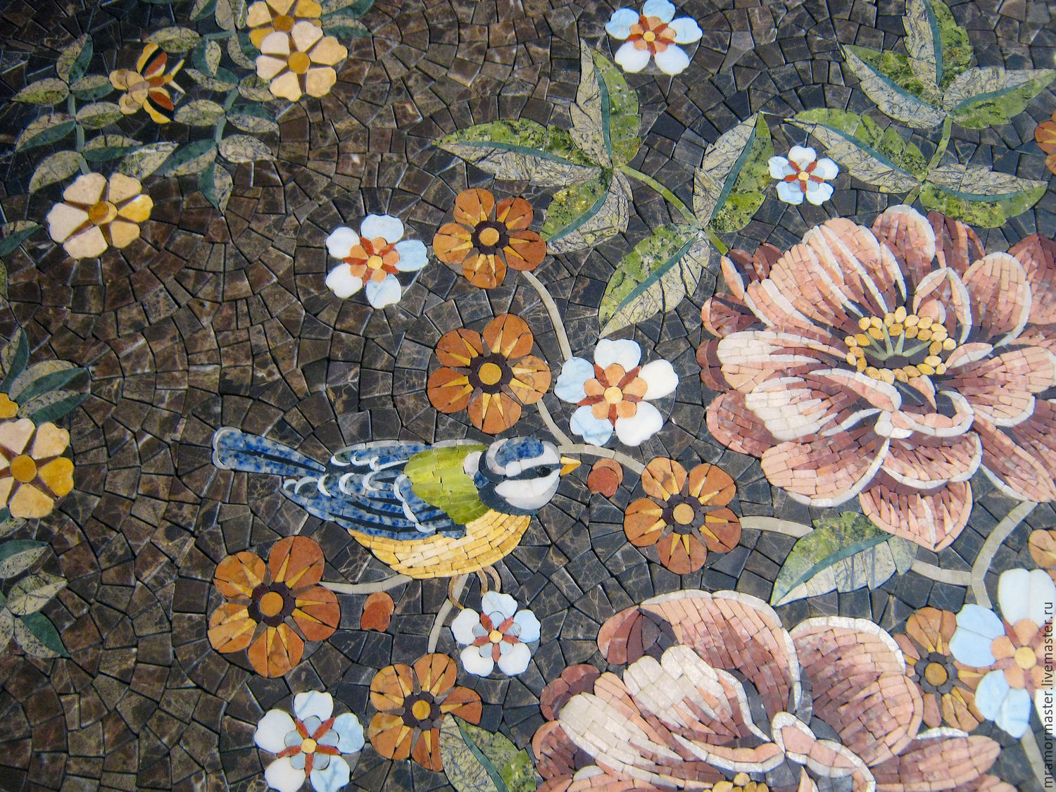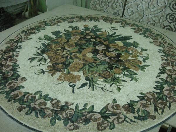 - The floral ornament is remarkable for the fact that it fits perfectly into various themes and always remains relevant. Marble mosaic with the image of flowers will be a great addition to your home or public institution.