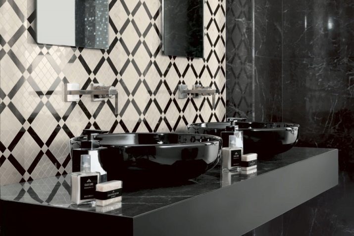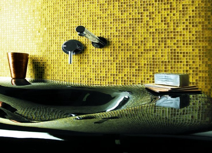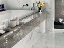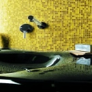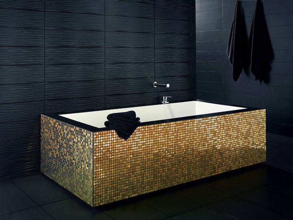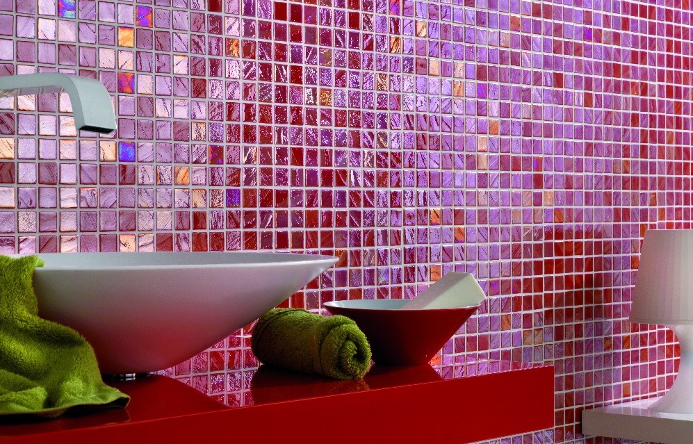 - mosaic on the grid is suitable for finishing surfaces of walls, floors, sinks, bowls, arches, and even baths outside;