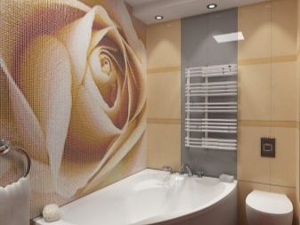 - Volume This decor welcomes limited quantities. If there are a lot of mosaic elements, instead of expressiveness of space, they will create a ripple effect. To avoid this, it is necessary to properly approach the design of the figure and its size. For example, you can make them vertical stripes, accentuate a small niche or a narrow wall.