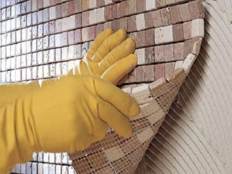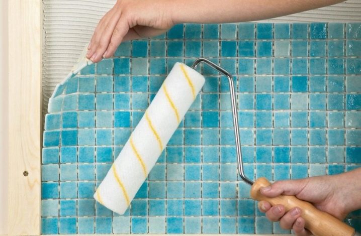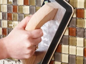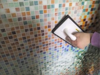 - The nuances of glue. Each type of mosaic tile on the grid involves the use of a certain type of glue. For example, it is customary to glue a stone mosaic on a cement-based tile adhesive. Polyurethane or epoxy glue should be used for glass tiles. So that the glass does not give out the tone of the base, an adhesive composition of white color is selected. For waterproofing is to buy a version with latex.In order to properly glue the stone or pebble version, you will have to buy a quick-hardening compound or tile cement-based glue.