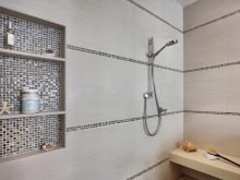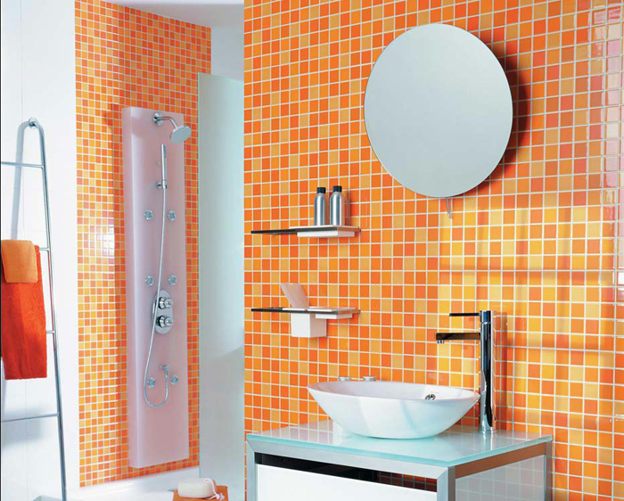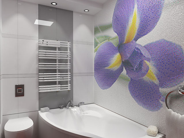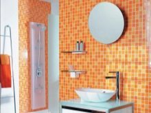 You can arrange a small mosaic on a piece of furniture or as an insert in a wall lined with tiles. Inexpensive mosaic of tiles, which are produced in a set of tiles, can be used on the floor and walls of the bathroom, kitchen, hallway.