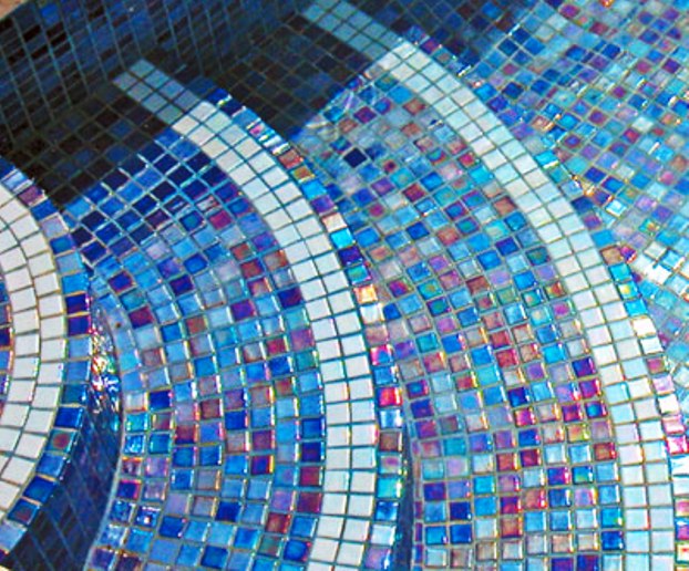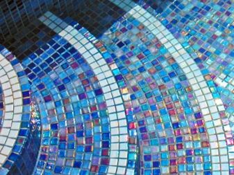 - Smalt. This type of mosaic came from antiquity. It is a multi-colored glass, which, unlike a glass mosaic, is opaque. It is obtained by adding different chemical elements to the glass mass. Like glass mosaic, smalt has many shades and a shiny surface. It allows you to lay out various patterns and picturesque paintings, is resistant to aggressive environments and can be used where you need to bear the load, for example, on the floor. At the moment, smalt is the most expensive of all varieties.
