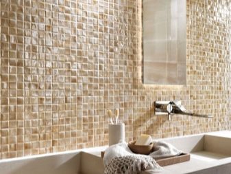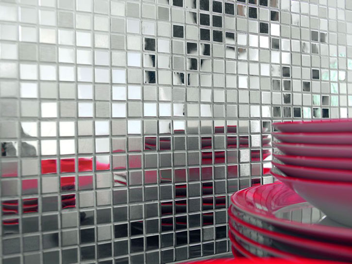 - Mirror. This mosaic is formed from pieces of mirrors of different shapes. It has the same properties as glass. As a rule, due to the fact that it strongly reflects the environment, it serves for decorating surfaces.