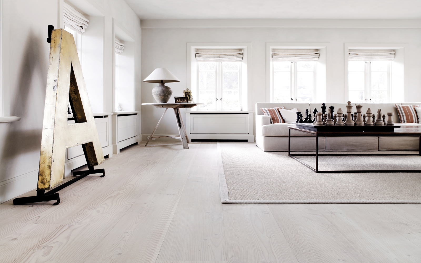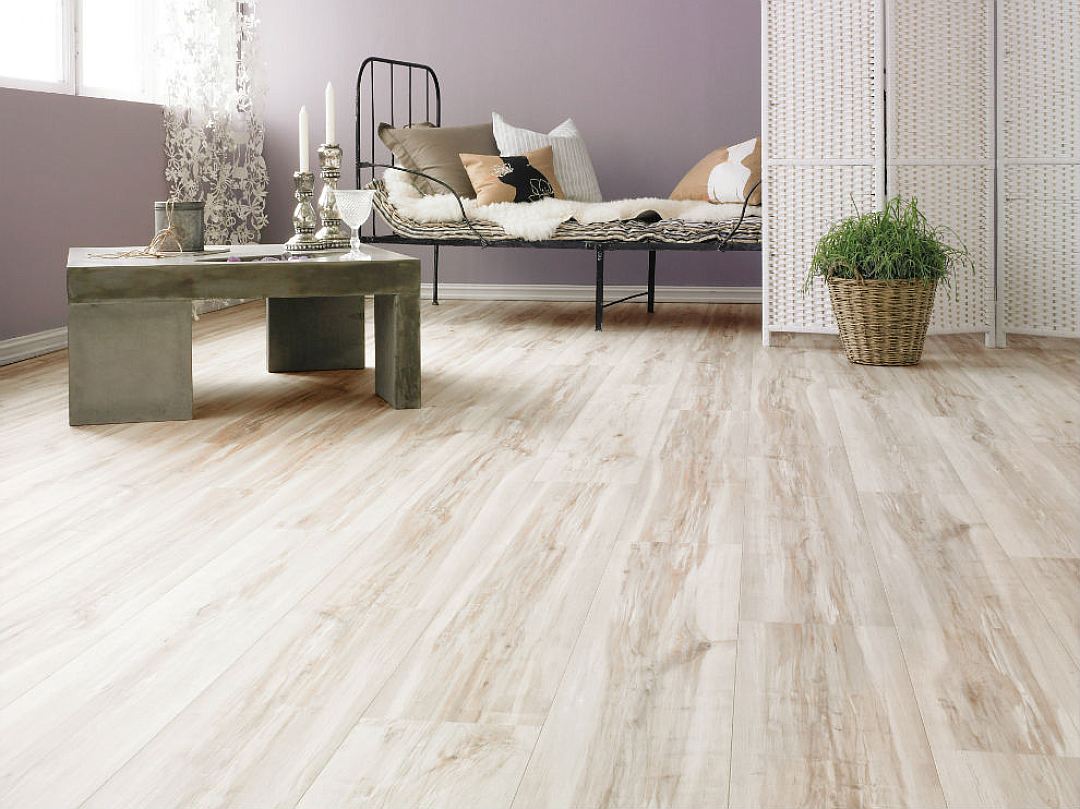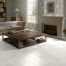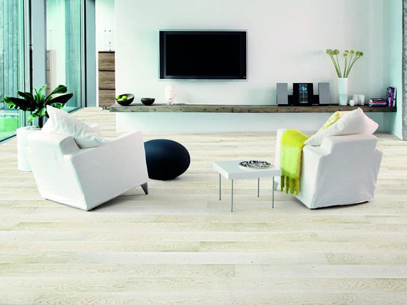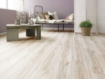 One of the most luxurious options is the floor of wood. It can be an oak, ash or other breed. After a special treatment, the color of the wood changes. The result is a noble milky, slightly pinkish shade. This option is ideal for the interior in the style of Provence. The advantages of such coverage include reliability and durability.