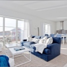 Particularly well in the bathroom looks white and blue scale, reminiscent of the sea, clear sky and air clouds.