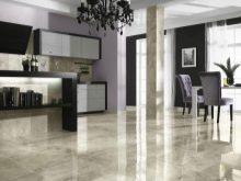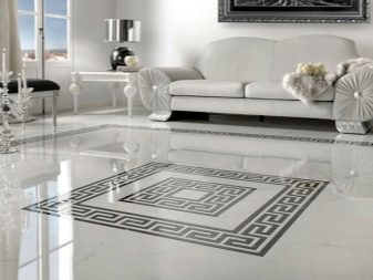 You can choose a monochromatic white tile or stop the choice on iridescent nacre. It also looks exquisitely tiled floor, imitating patterned marble. As for the benefits of this material, He is unpretentious in the care and is quite practical, and also looks expensive.