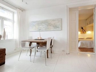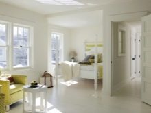 If you decide to paint the walls white and doubt the choice of floor material, do not think that excessive whiteness will make the interior boring. Snow-white floor, rolling in the same walls, and then into the ceiling, makes the room surprisingly airy and spacious.