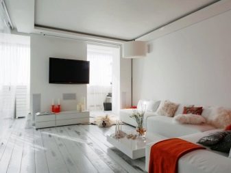 In such a situation it is recommended to use dark doors, curtains with a print, colored or dark carpets, and various elements of decor. So you can avoid monotony and balance the color gamut.