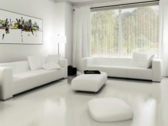 - Psychological impact. Indoors with snow-white flooring, you will feel like on a cloud, floating in space. The feeling of lightness, freedom and freshness, which gives this color, will have to rest and relaxation.