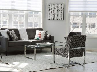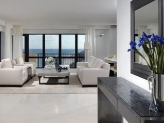 Decorative pillows of rich colors, fresh flowers in pots and vases, interesting souvenirs will revive the interior. Such a living room will always look fresh and solemn.