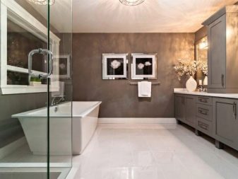 The selection of the type of coverage depends on the style of the room. For classics and palace style marble and porcelain tiles will be the best choice. For Provence, Scandinavian, eco-style tree is perfect.