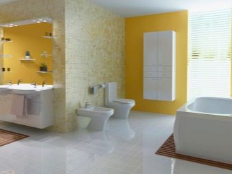 The bathroom also usually use tile.In this room, the ability of white to increase the space is especially appreciated, because many bathrooms are not distinguished by large dimensions. In combination with white plumbing This tile gives the impression of perfect purity and freshness, which is also relevant here.