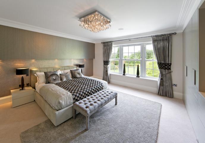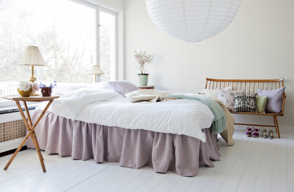 This area is designed for rest and relaxation. In the bedroom, white color has a calming function. Here, the white floor is better to combine with pastel colors. Both warm tones (beige, light peach, pale pink) and cool shades (gray, pistachio, pale blue) are permissible. Bright colors should be avoided.