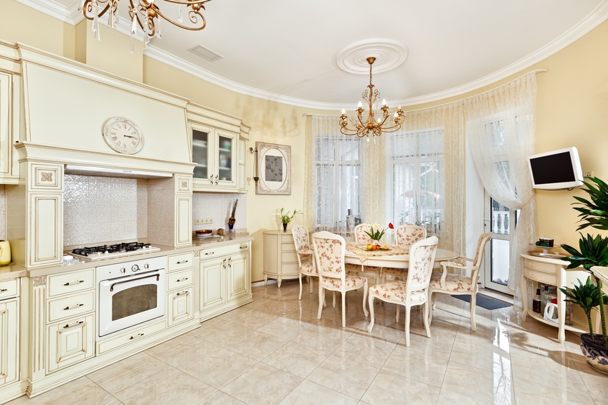 It is believed that the bright floor in the kitchen is impractical. However, if you choose a quality and easy-to-clean coating, the issue of cleanliness will be resolved. Typically, for such purposes choose porcelain.