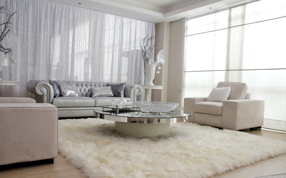 If the light interior seems too boring to you, add comfort with the help of lush curtains and a fluffy carpet.