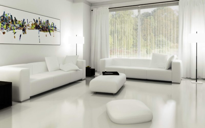 - Facelessness An abundance of white (walls, floor, furniture) can cause the interior to become dull and expressionless. Blurred boundaries and lack of accents can spoil the overall perception of the room.