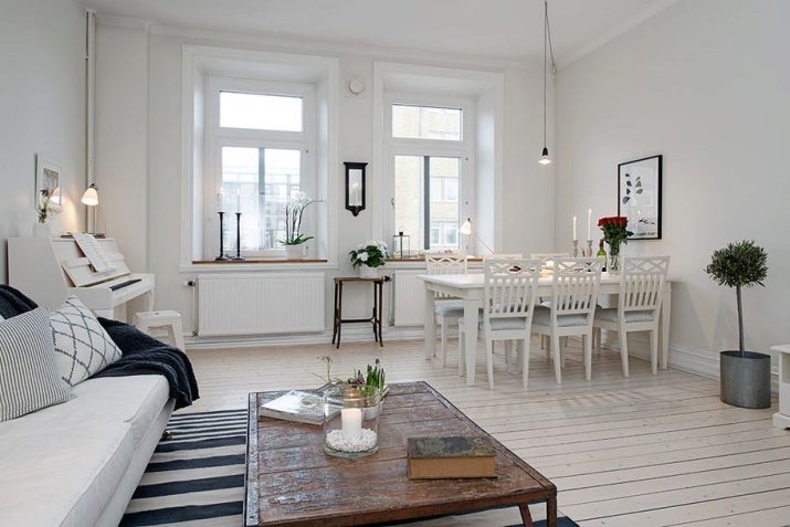 However, if white walls, doors and furniture are quite common, not everyone can decide on such a floor. Many fear the impracticality of such a choice, but their fears are in vain. Properly chosen flooring material and regular cleaning make it easy to maintain the perfect look of the room. At the same time, the white floor will delight the hosts and delight guests, and the variety of color combinations will open up great opportunities for decorating the space.