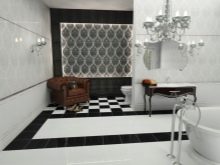 - Chess laying - the most common method, which is used in the design of the kitchen, bedroom or bathroom in a classic style. It uses a square tile. The white coating should prevail over black, which is why the dimensions of the light tile should be larger than the size of the dark material. So you get the illusion of "wrong" chessboard.